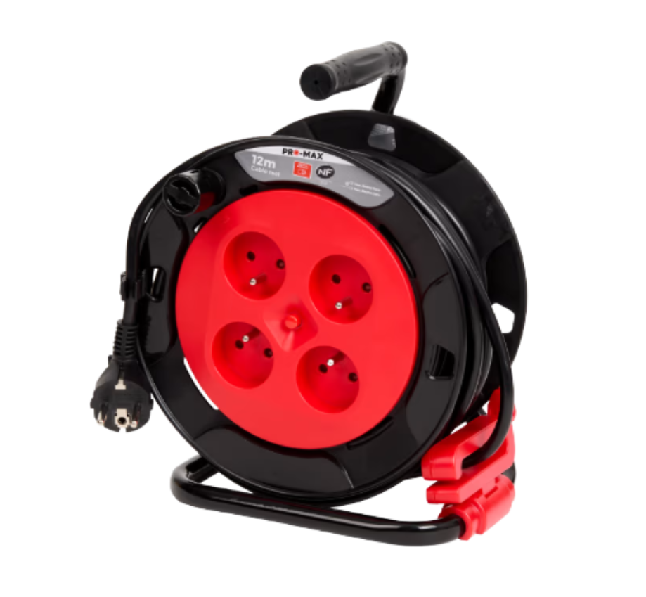 Enrouleur électrique avec câble de 12 m et 4 prises.