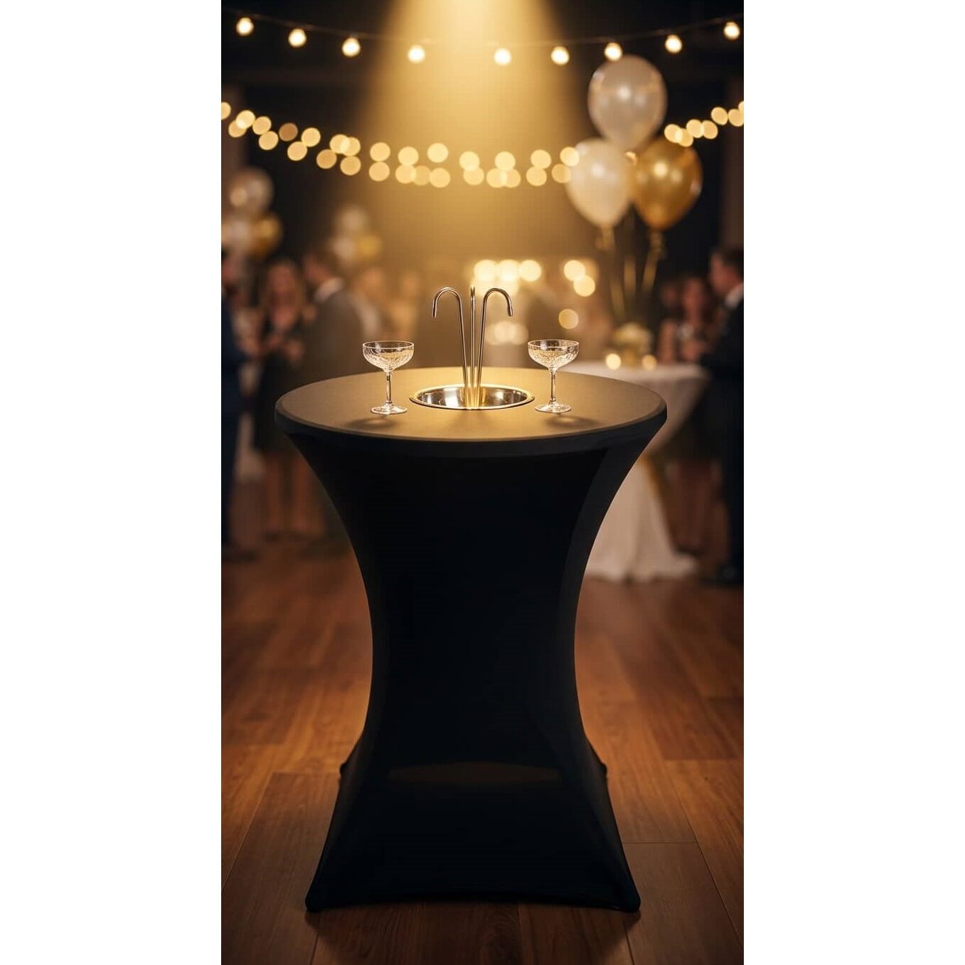 Fontaine à punch d’une capacité de 60L avec un Mange debout de 80cm de diamètre et 110cm de haut.