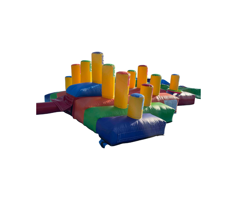 Jeu de lancer d’anneaux gonflable de dimensions : 4m x 3.3m x 2m.