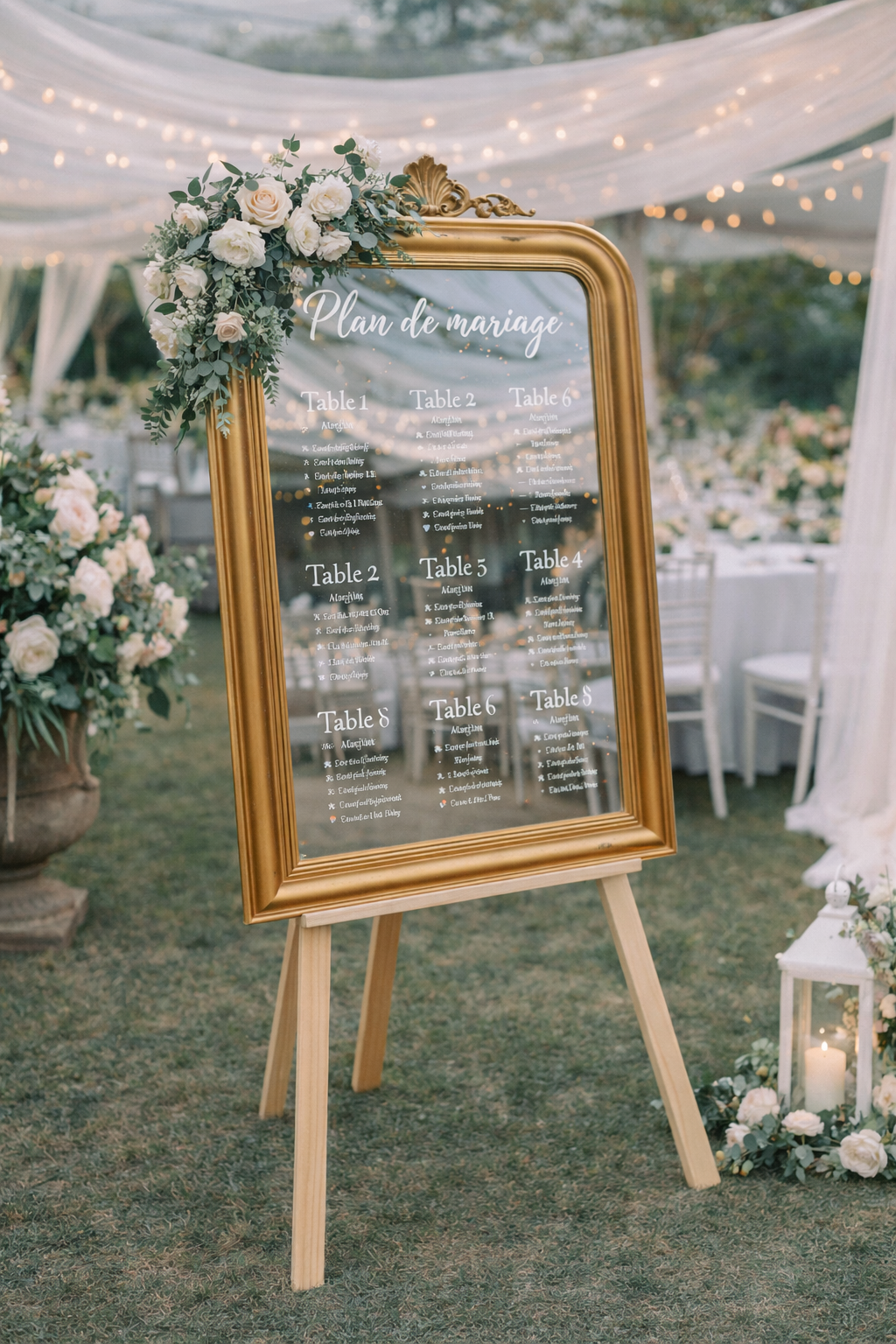 Miroir avec chevalet, idéal pour afficher votre plan de table